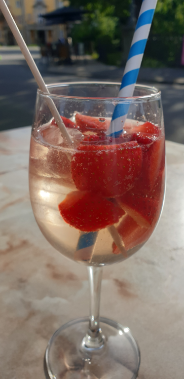 2cl Holunderlikör (Weingut Zenz-Pohl, Mosel) mit 10 cl Secco nobile (Riesling, weiß, trocken, Weingut Zenz-Pohl, Mosel) auffüllen.